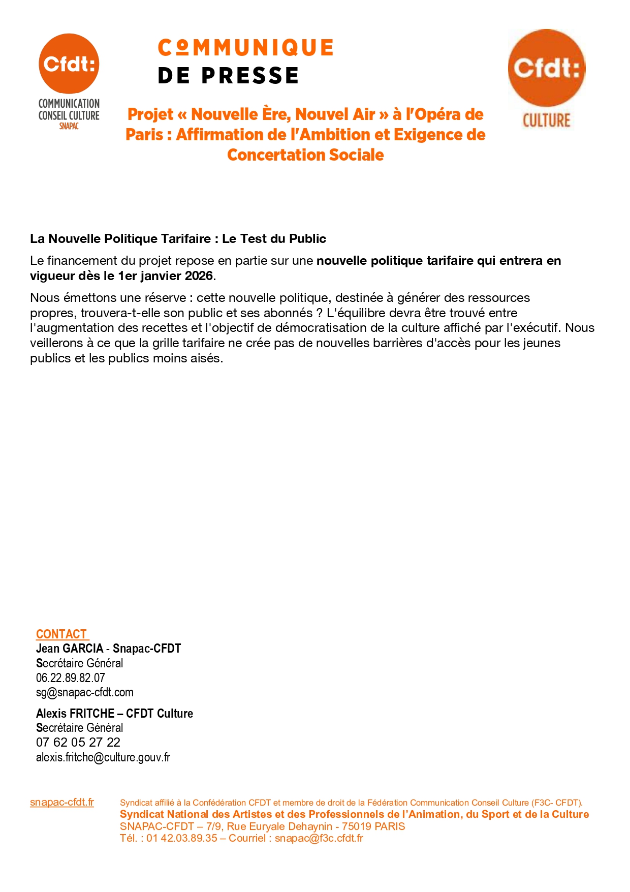 Projet « Nouvelle Ère, Nouvel Air » à l’Opéra de Paris : Affirmation de l’Ambition et Exigence de Concertation Sociale