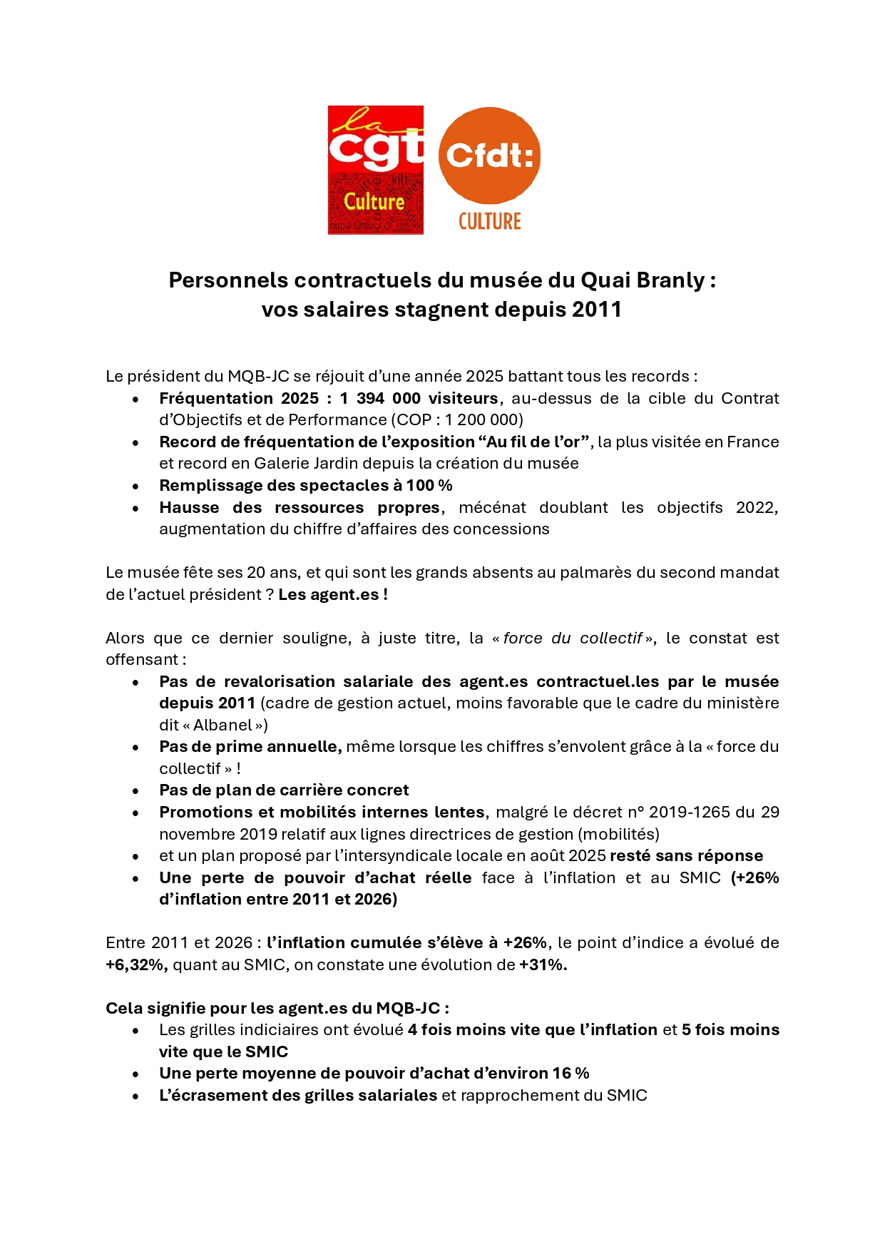 Personnels contractuels du musée du Quai Branly : vos salaires stagnent depuis 2011